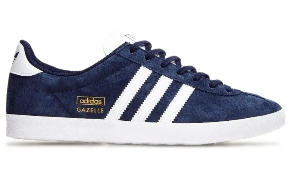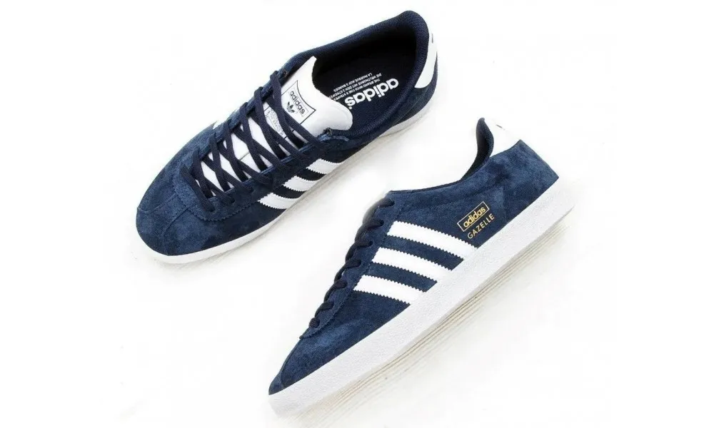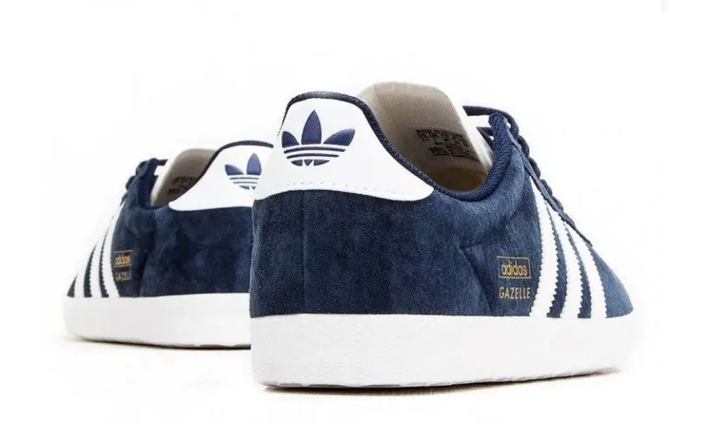- Логотип: три полоски, трилистник Adidas, золотистая надпись Gazelle