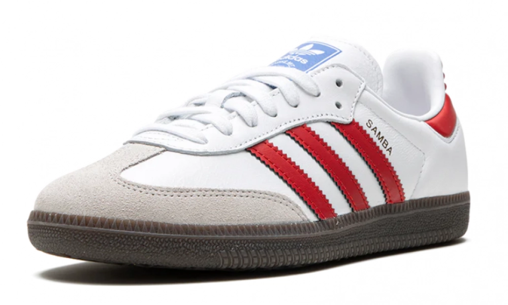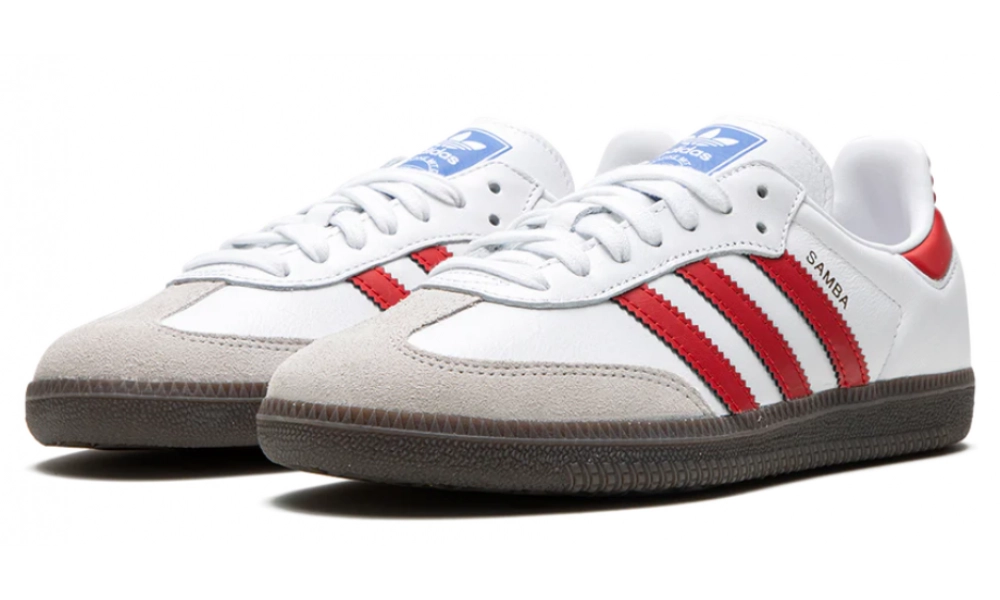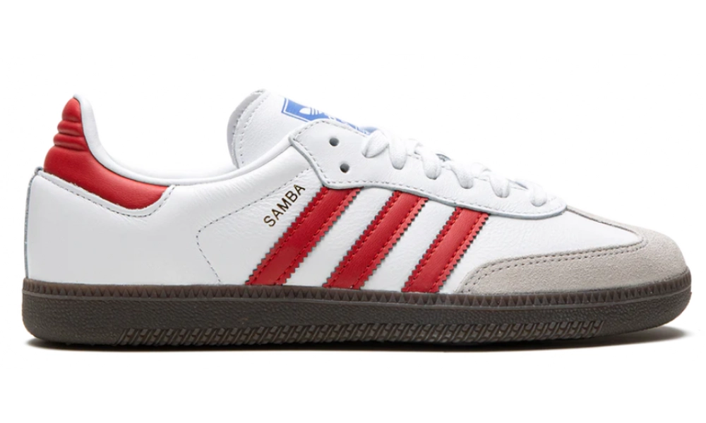 Чистота белого цвета кроссовок гармонично сочетается с яркими акцентами Better Scarlet, что придает модели динамичный и современный вид. Лаконичный дизайн Adidas Samba OG сохраняет классические контуры, которые были популярны на протяжении десятилетий, делая эти кроссовки настоящими иконами уличной моды.