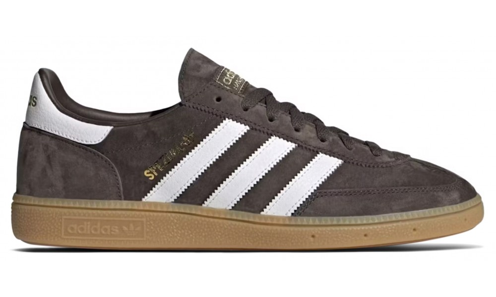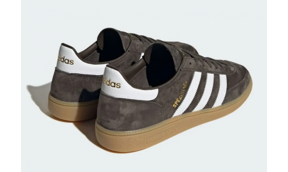 - Логотип: три полоски, трилистник Adidas, золотистая надпись Spezial