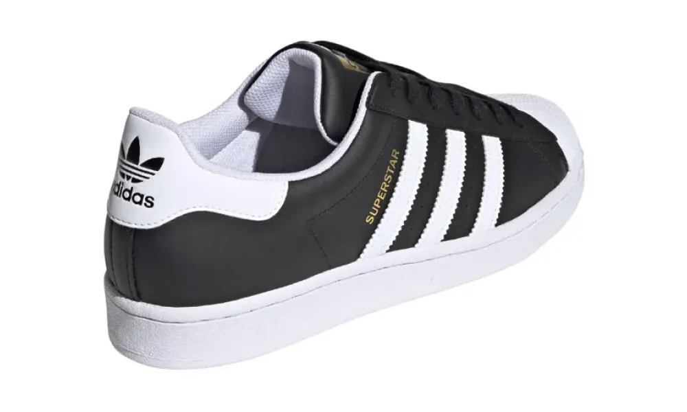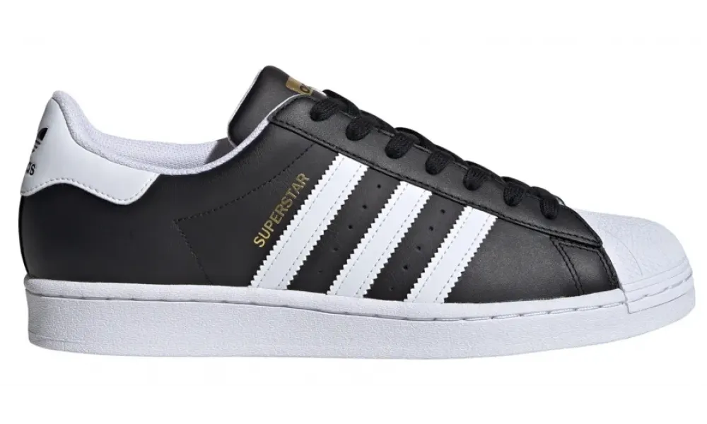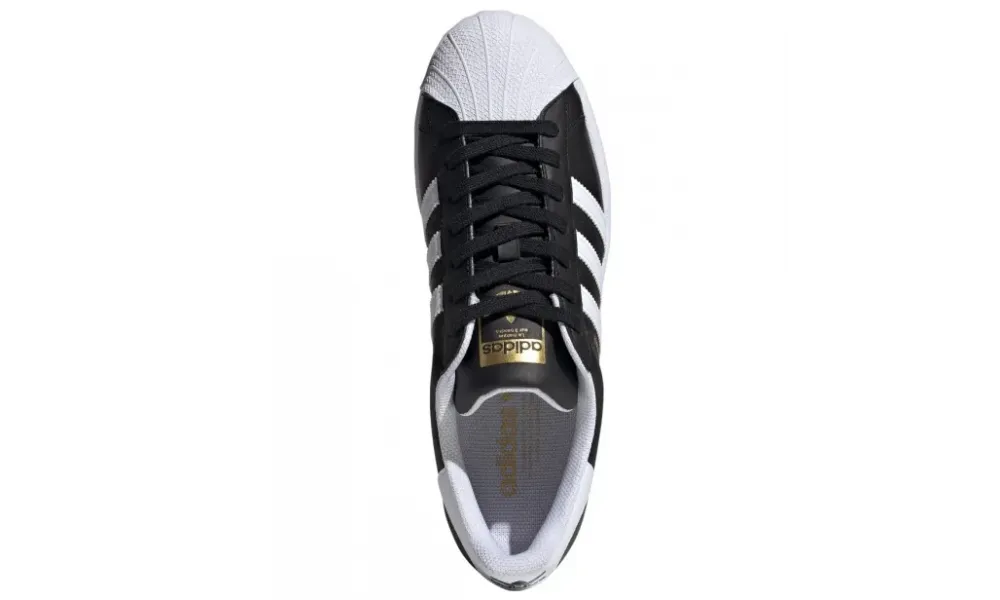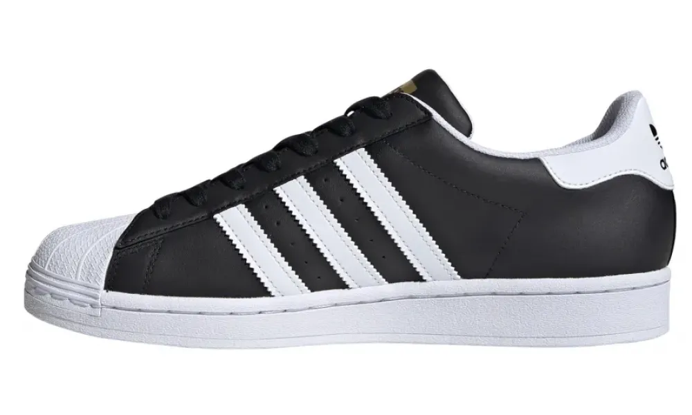 - Логотип: три полоски, трилистник Adidas, надпись Superstar