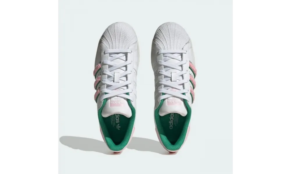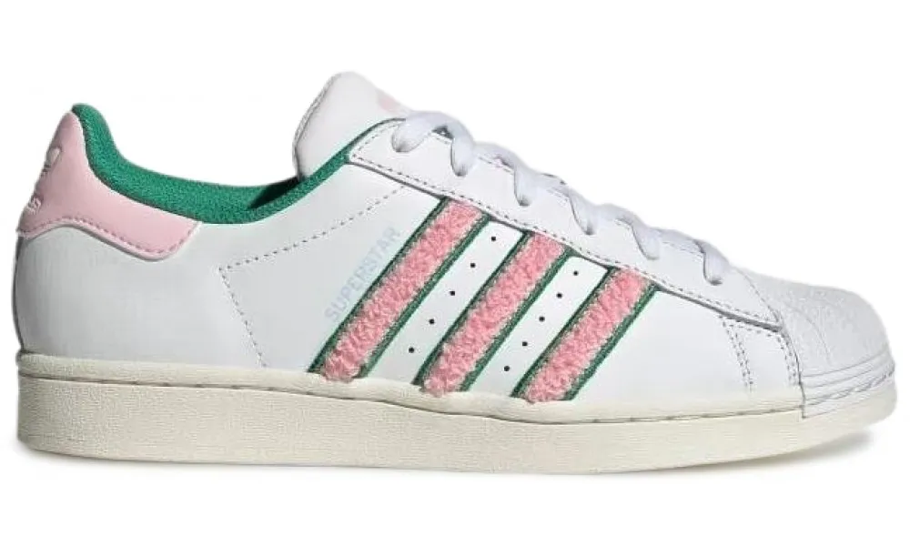Adidas Superstar White Pink Green Chenille